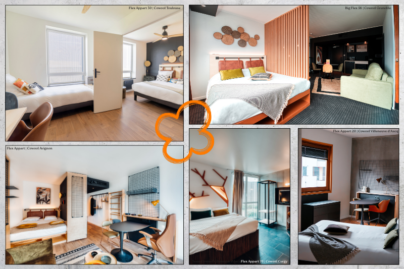 A travers nos cinq établissements implantés en France, nous souhaitons transmettre à nos Cowoolers, une nouvelle forme de vie, qui s’adapte. Nos espaces de coliving, proposent des lieux de vie modulaires, ludiques, durables et ouverts. Du 17 m² aux 100 m², nos appartements sont entièrement décorés dans le style unique qui nous définit : flex et cosy.